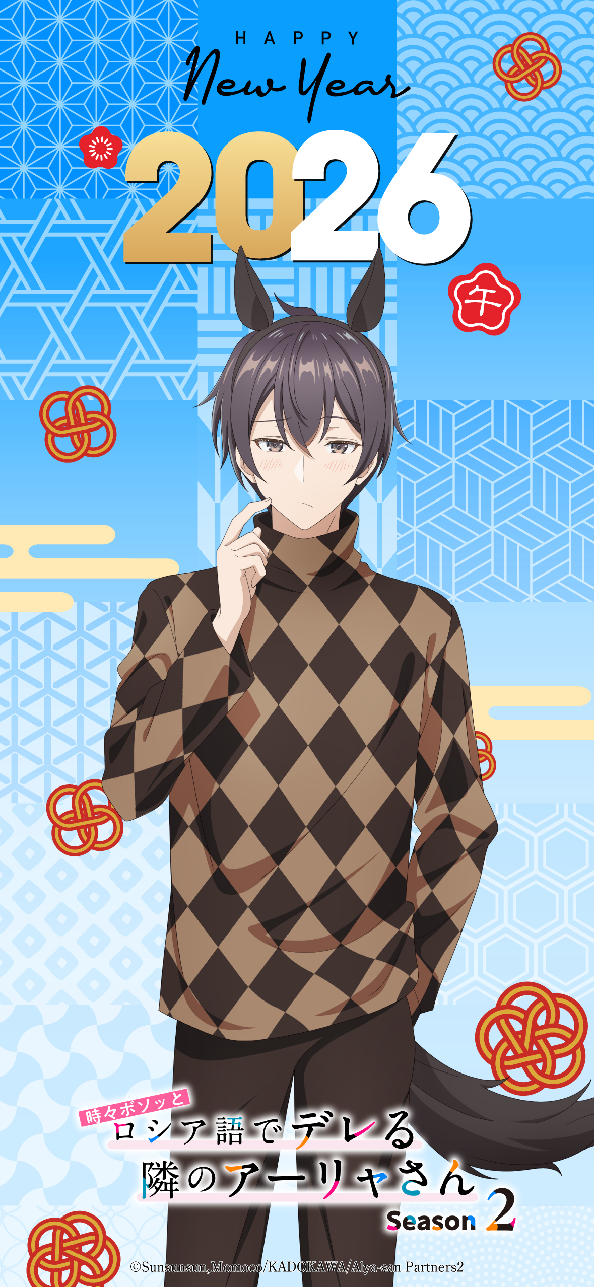 新年の干支「午」をモチーフに、馬の仮装をした政近・アーリャ・有希のビジュアルをお楽しみください。