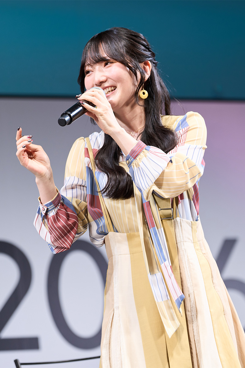 続けて、第2期のメインビジュアル第1弾も解禁。夏服姿のキャラクターたちが海辺にたたずむ爽やかなビジュアルに、キャスト陣、お客さんともに見入っている様子でした。PVにも登場していた、谷山沙也加・宮前乃々亜・更科茅咲・剣崎統也の新キャラクタービジュアルもあわせて紹介され、キャラクターの個性が見える着こなしの魅力をキャスト陣が語りました。